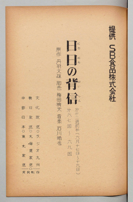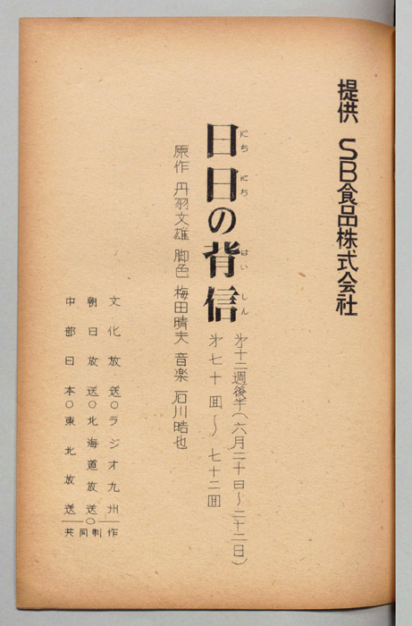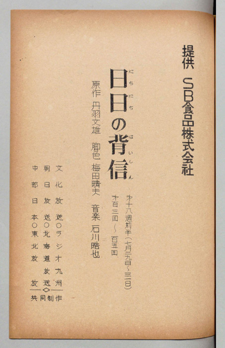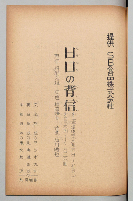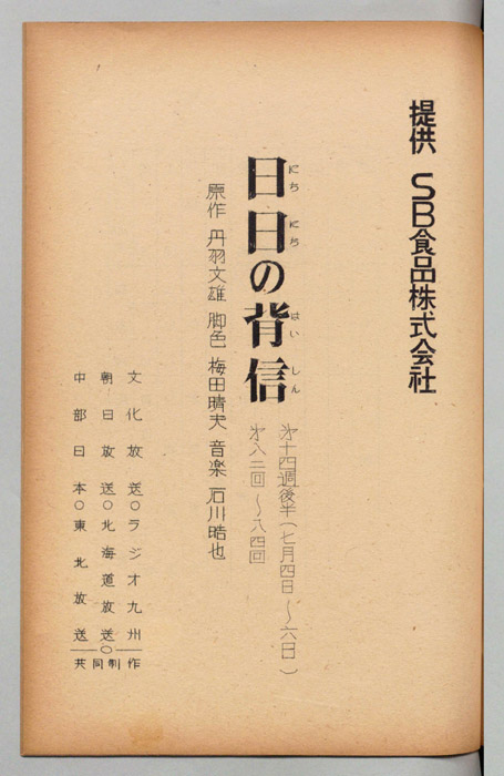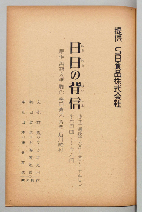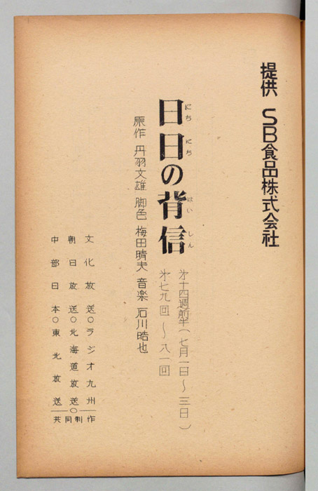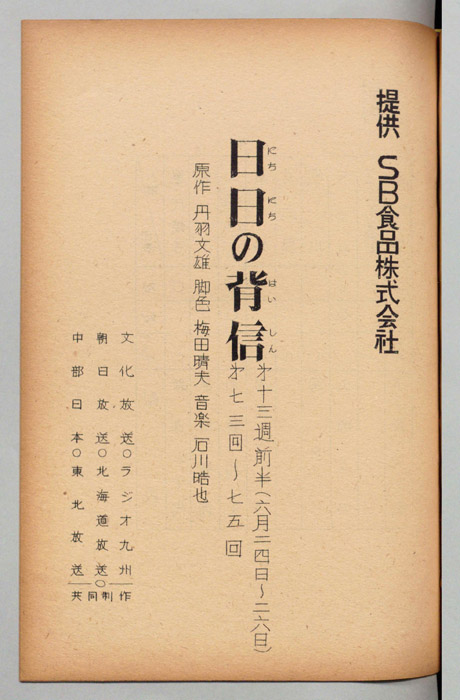 - 放送局 : 文化放送,朝日放送,中部日本,ラジオ九州,北海道放送,東北放送