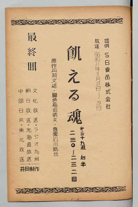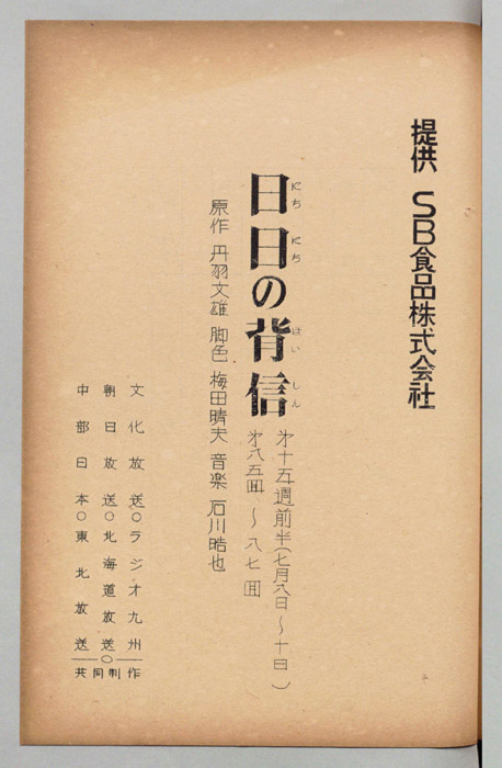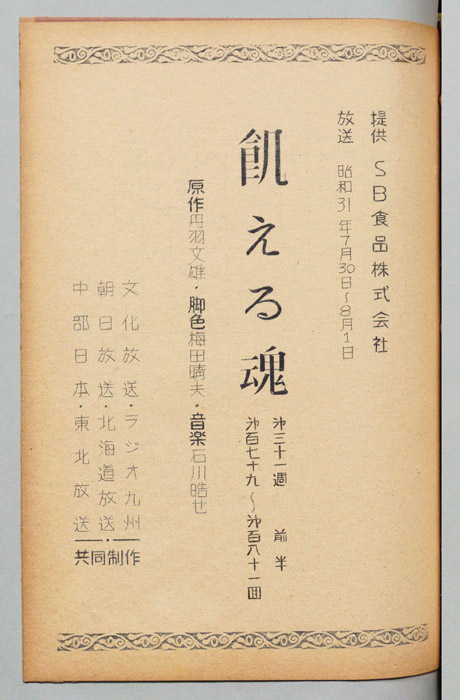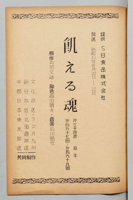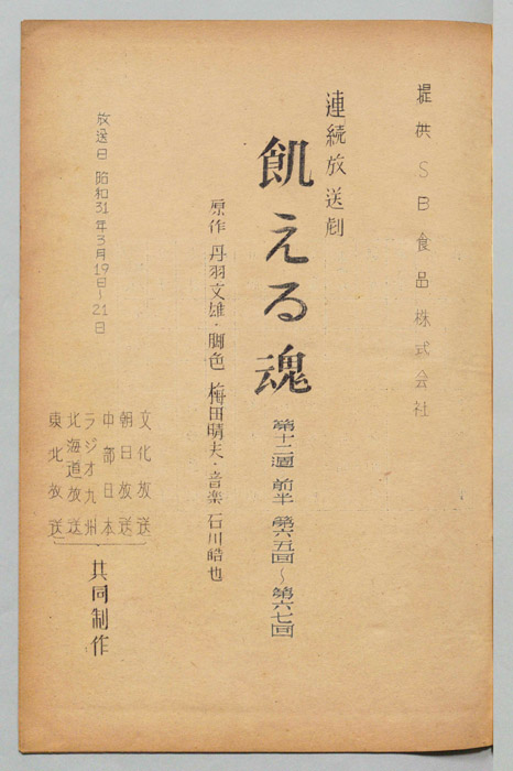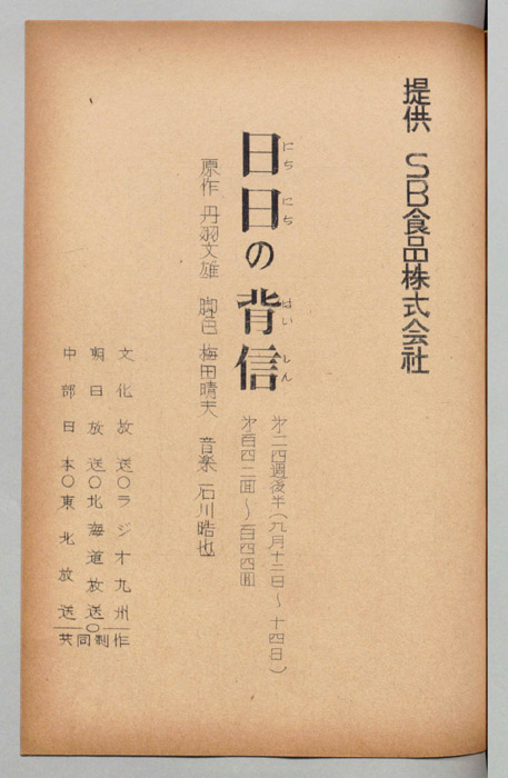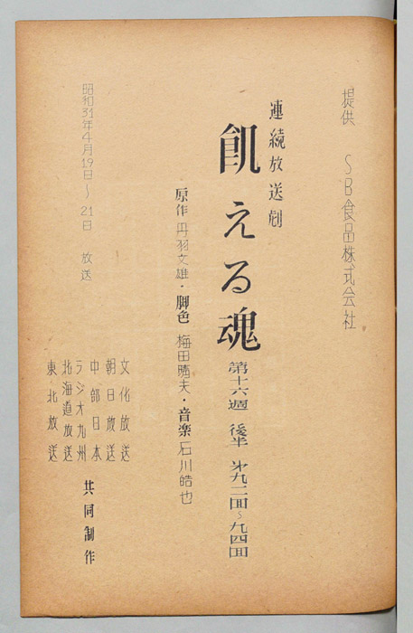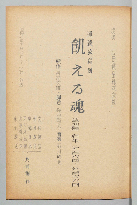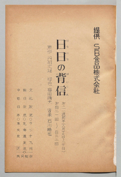 主な出演 : 新珠三千代,加藤和夫,三島雅夫,関京子,加代キミコ,(語り手)水島弘- 作家 : 梅田晴夫