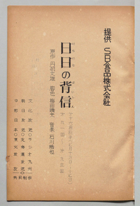 主な出演 : 加藤和夫,加代キミコ,万里陽子,森幹夫,河村弘二,関京子,桑山正一,(語り手)水島弘