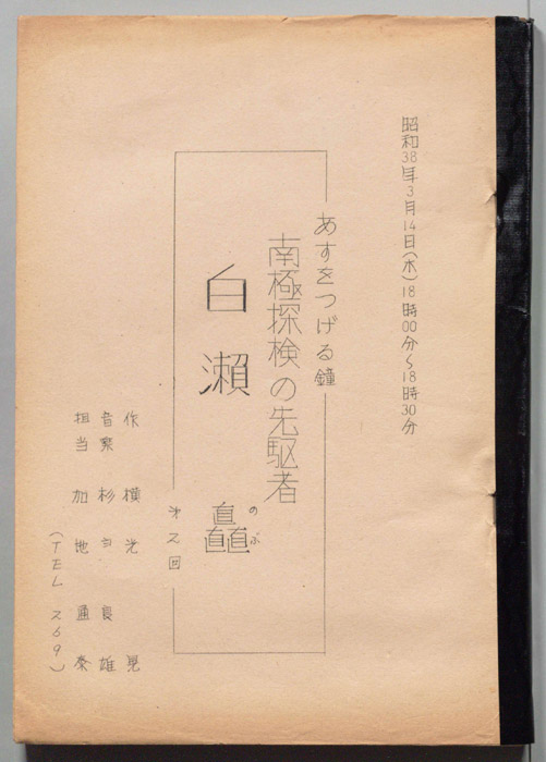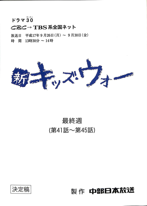 主な出演 : 浜木綿子,左とん平,山田まりや,大場順,山田佳伸,酒井麻吏,森みつえ,(以下手書き)平淑恵,深水三章,でんでん,衣通真由美,大路三千緒,吉本選江,春木みさよ,横澤祐一,赤村秀之,石井亜貴子(?),宇納祐,加地健太郎,工藤龍生,岡野百合,藤- 作家 : 長野洋