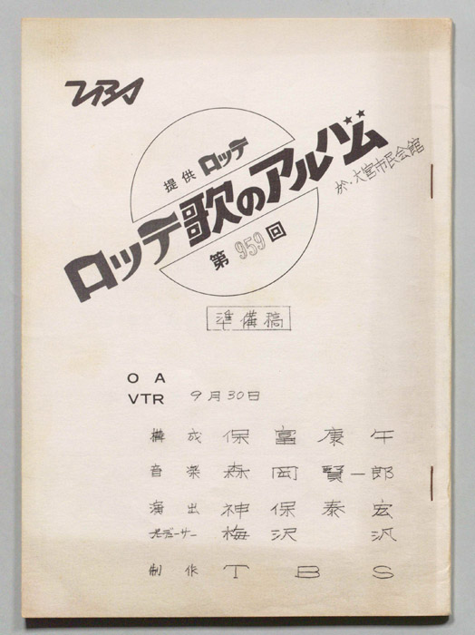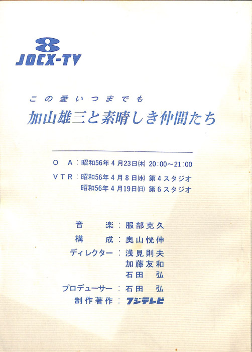 主な出演 : 由美かおる,原田糸子,ザ・ウィンキーズ,ザ・ボンネッツ,西野バレー団,東京ユニオン・オーケストラ,加山雄三,ランチャーズ,桂高丸・菊丸,トリオ・スカイライン,はかま満緒- 作家 :