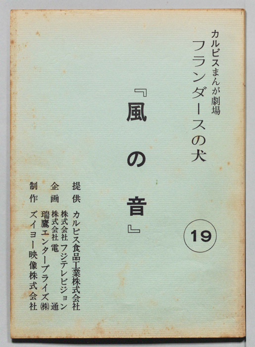 主な出演 : (ネロ),(ジェハン),(パトラッシュ),(アロア),(コゼツ),(エリーナ),(ヌレット),(クロ),(ハンス),(金物屋),(商人),(居酒屋の主人),(牛乳集配所の主人),(風車小屋の職人),(ナレーター),(その他)