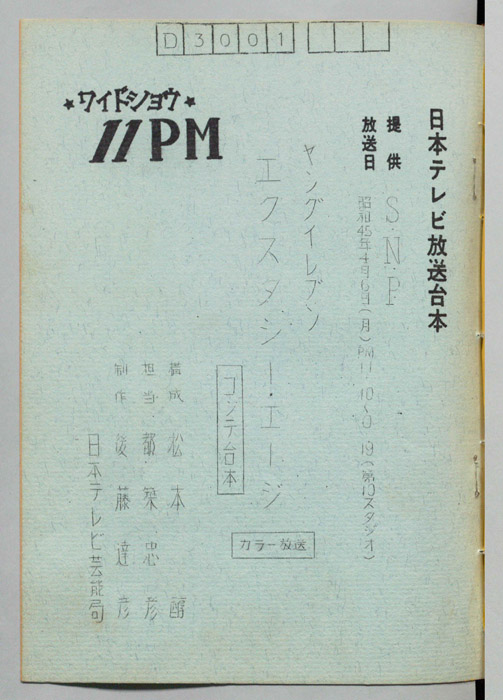 主な出演 : 松岡きっこ,加藤和彦,竹村健一