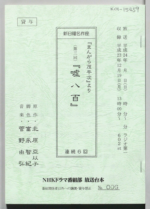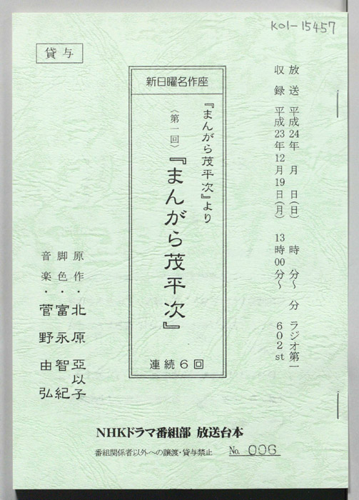 - 収蔵先 : 早稲田大学 坪内博士記念演劇博物館