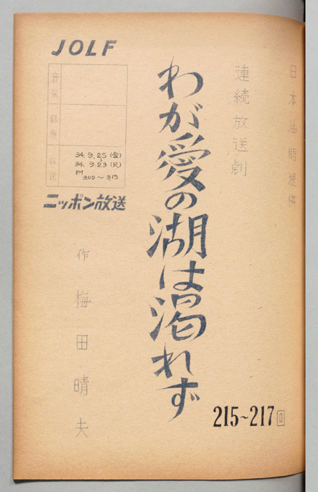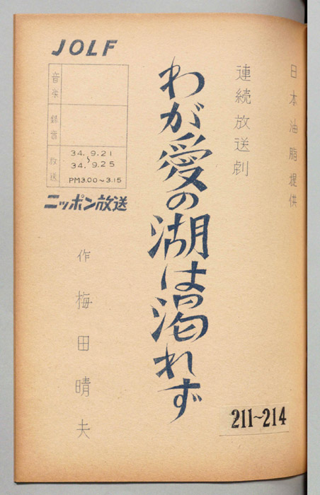 主な出演 : 吉行和子,高橋昌也,佐伯徹,小幡昭子,池田忠夫,神山繁,(語り手)久松保夫