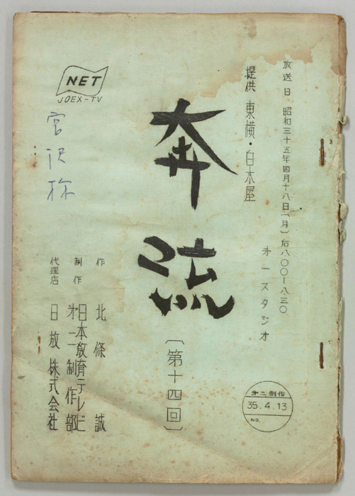主な出演 : 宮城千賀子,水原眞知子,坂本武,山村聰,北龍二,川喜多雄二,田中新一,櫻むつ子,水上令子,八乙女信子,諸角啓二郎,美山悦子,高瀬泰二,山田英子,阿南純子,田代芳子,神楽坂はん子- 作家 : 棚田吾郎,舟橋和郎