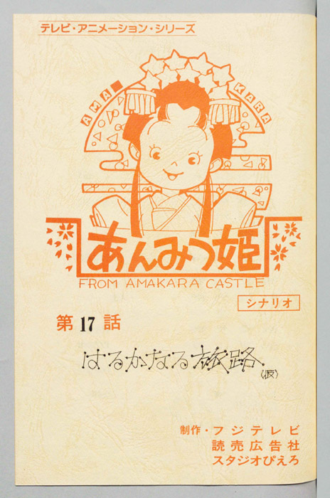 主な出演 : [(あんみつ姫)小山茉美,(団子の守)神山卓三,(しぶ茶)京田尚子,(家老)八奈見乗児,(柿の種介)千葉繁,(おはぎの局)鈴木れい子,(カステラ)青木菜奈,(甘栗の助)三田ゆう子,(せんべえ)玄田哲章,(源内)富山敬,(かのこ)前【あんみつ姫】あまから城のお姫様「あんみつ姫」は、器量がよく優しい性格をしているが、やんちゃでおてんばなところがあり、その好奇心から城の中だけでなく、城下町でも自由奔放な行動をしては周囲の人々を困らせていた。ア