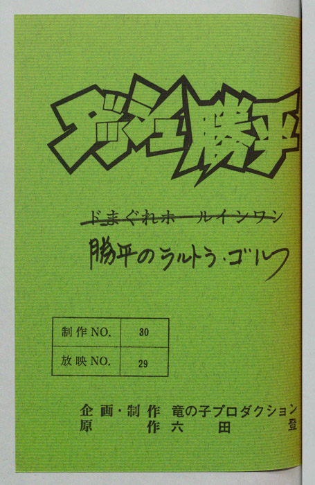 主な出演 : [坂本勝平:田中真弓,秋あかね:津島瑞穂,あかねのパパ:嶋俊介,あかねのママ:友近恵子,夏先生(コーチ):小宮和枝,大場:村山明,天王山コーチ:村越伊知郎,誠一郎:大平透,中田,デブ子,天王山キャプテン,その他]【ダッシュ勝平】私立青林高校のチビでお調子者の一年生『坂本勝平』は純白パンティー大好きな問題児であった。彼がことあるごとに女子更衣室に忍び込んでは驚異的な運動神経を生かして、純白パンティーを探し求めて侵入しては、凄