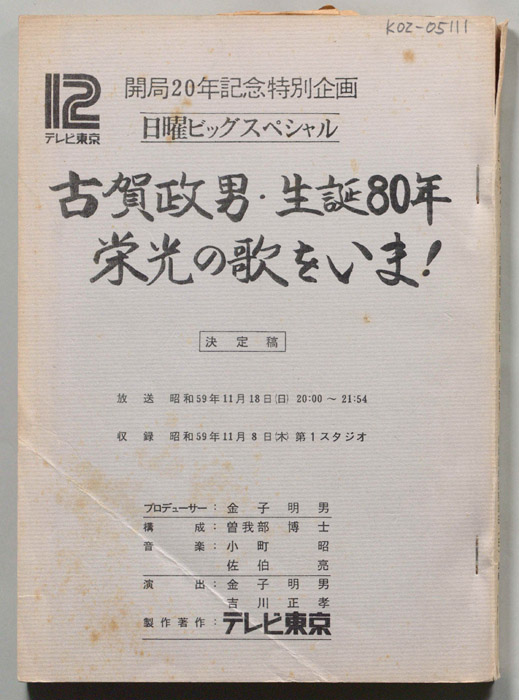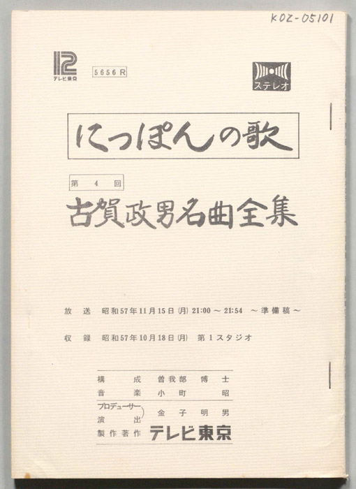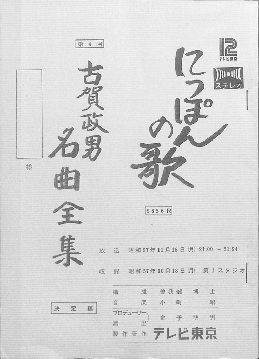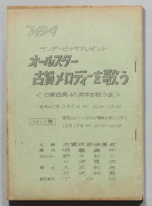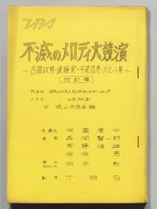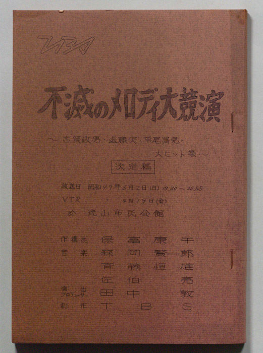 主な出演 : 橋幸夫,美空ひばり,古賀政男,島倉千代子,川内康範,吉田正,松尾和子,和田弘とマヒナ・スターズ,(司会)三和完児- 作家 : 西野晧三