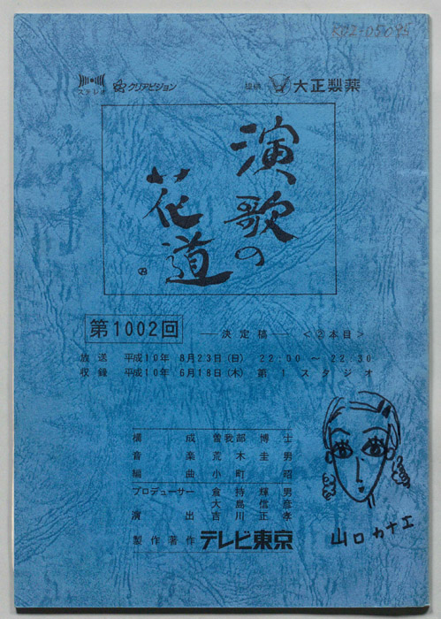 主な出演 : 大塚文雄,金沢明子,菊地恵子,白井幸子,(司会)玉置宏,(伴奏)藤本琇丈社中<三味線>藤本秀輔,藤本秀三,藤本秀康,藤本直秀,<鳴物>山田鶴助,山田鶴志,<唄囃子>志村春美,秋野恵子,(尺八)米谷威和男,(津軽三味線)沢田勝秋,工