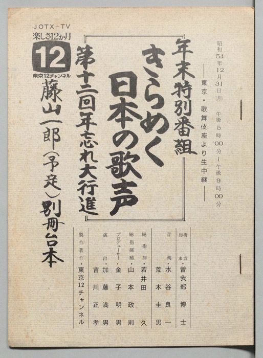 主な出演 : 金沢明子,岸千恵子,坂越達明,原田直之,(司会)玉置宏,(踊り)二代目・西崎緑,(伴奏)藤本琇丈社中<三味線>藤本秀輔,藤本秀三,藤本秀康,藤本秀茂,<鳴物>山田鶴助,山田鶴志,<唄囃子>志村春美,秋野恵子,(尺八)米谷威和男,(津