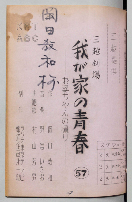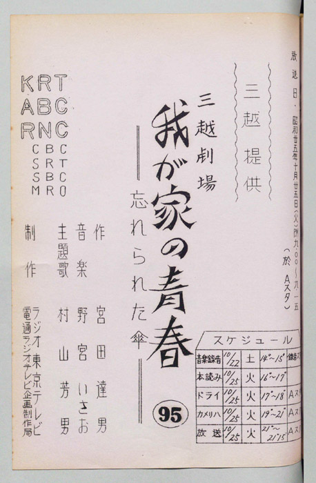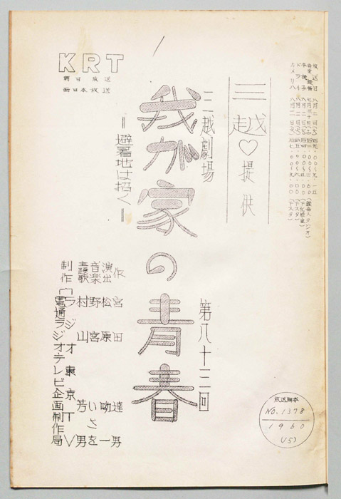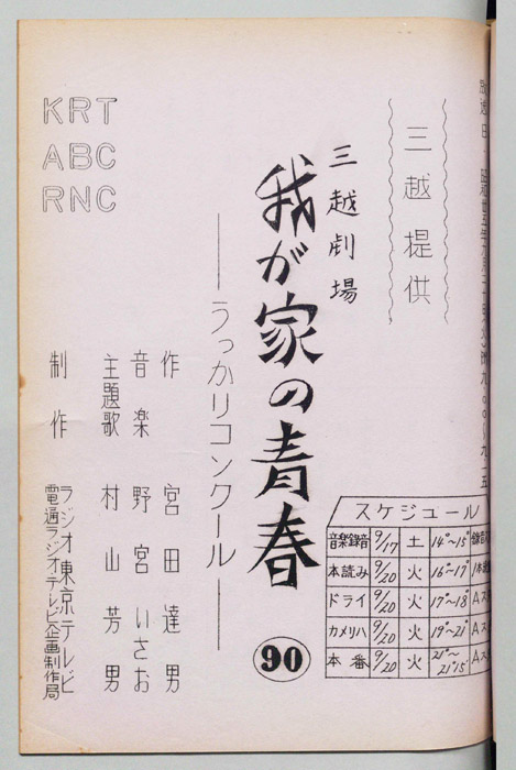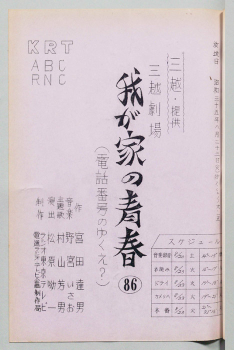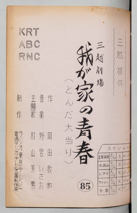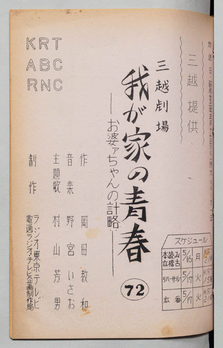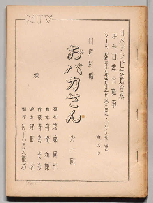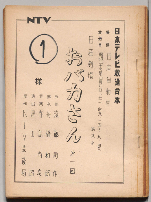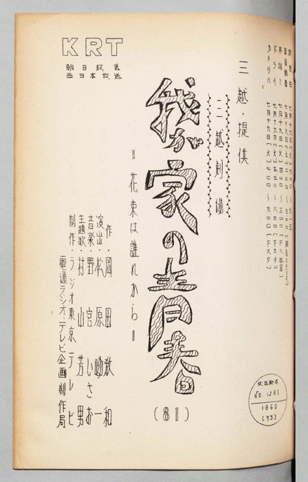 主な出演 : 森光子,北大路欣也,三木のり平,鰐渕晴子[鰐淵晴子],草笛光子,小林哲子,那須ますみ,吉川満子,清水紀八郎,一ノ木晶子- 作家 : 中山隆三