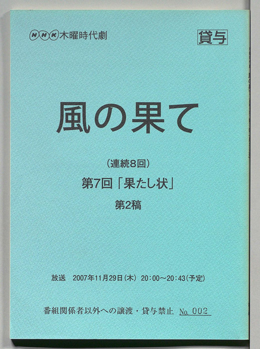 主な出演 : 村上弘明,牧瀬里穂,苅谷俊介,高野八誠,森岡豊,大沢樹生,照英,谷川翔,園部豪太,冨川一人,染谷将太,渡部豪太,椿直,橋爪遼,和泉元彌,俊藤光利,寺泉憲,富司純子,西村雅彦,西郷輝彦,夏八木勲,(語り)国井雅比古- 作家 : 池田政之