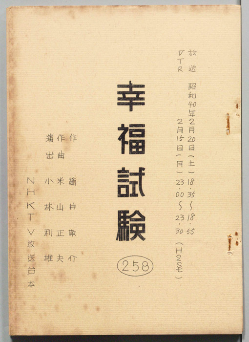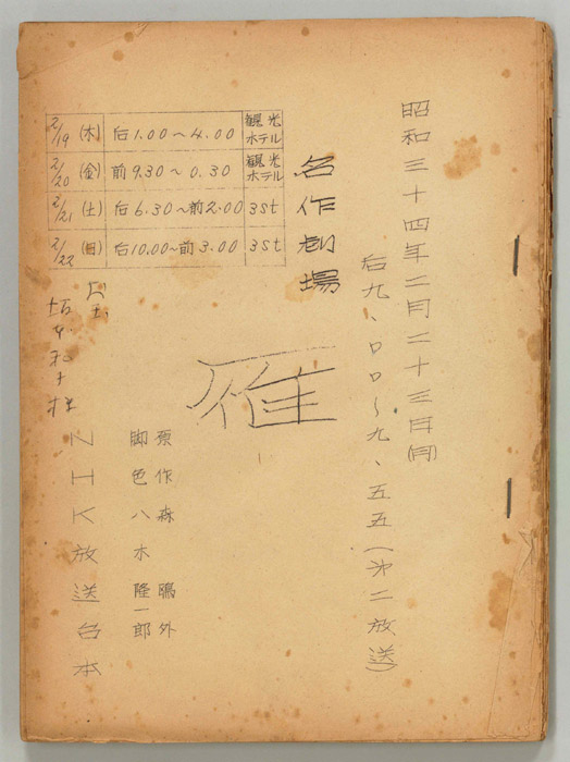 主な出演 : 旗照夫,磯部玉枝,竜岡晋,日野麻子,悠木千帆,東郷晴子,向井迪子,陸路久子,柳生博,宮部昭夫,塚本和子,新道乃里子,永井百合子,吉田雅子,中村紀子子,大森暁美