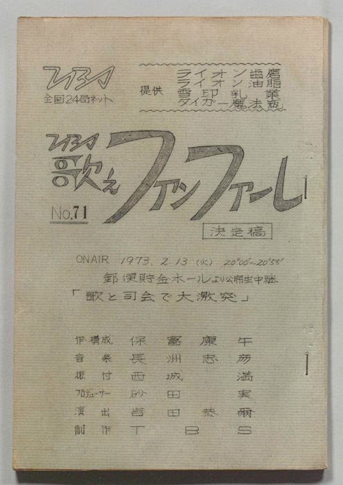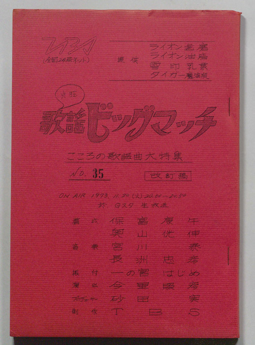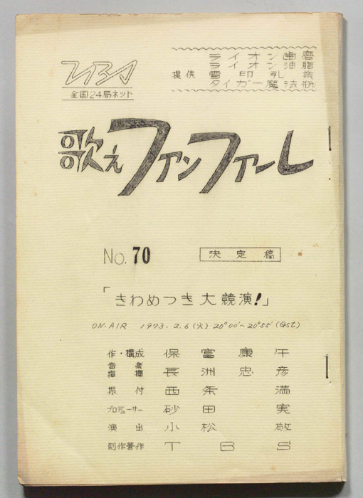 主な出演 : (司会)古舘伊知郎,井上ひさし,熊倉一雄,和田アキ子,布勢博一- 作家 : 高久進,佐藤肇,(構成)深作欣二,佐藤純弥