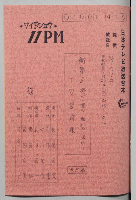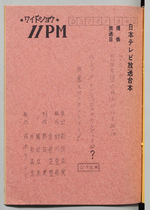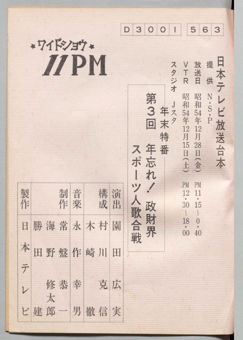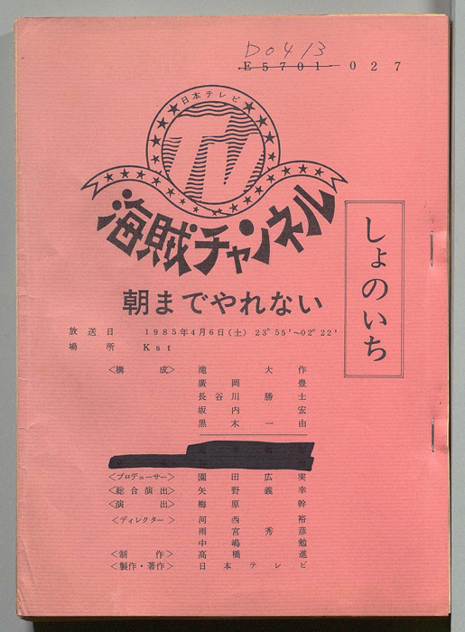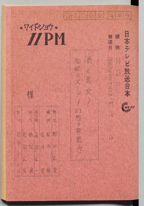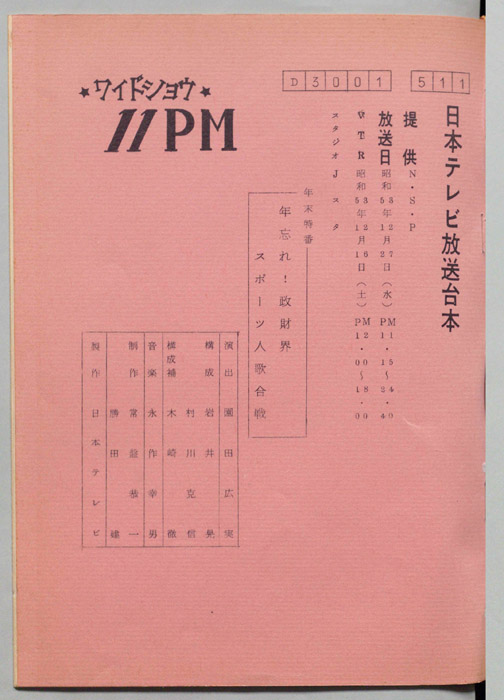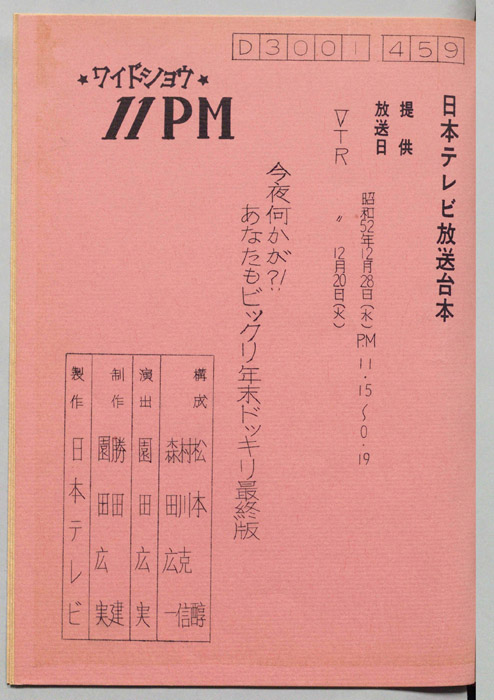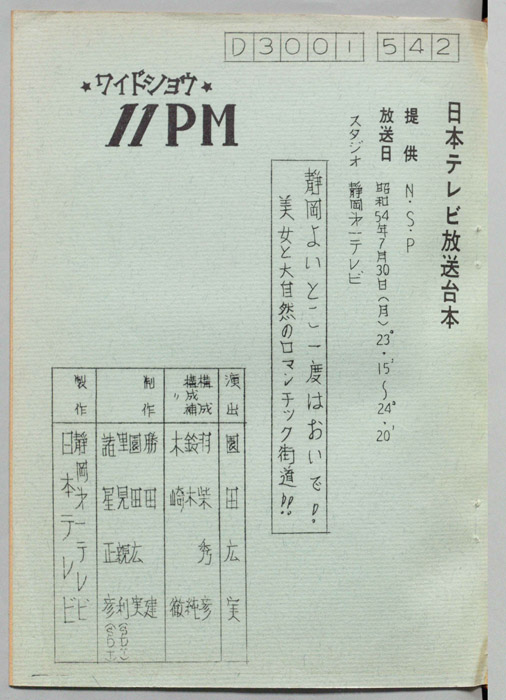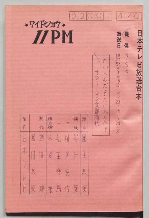 主な出演 : 愛川欽也,かたせ梨乃,今野雄二,飯塚文雄,ラッキー7,青空球児・好児,木の葉のこ,田辺一鶴