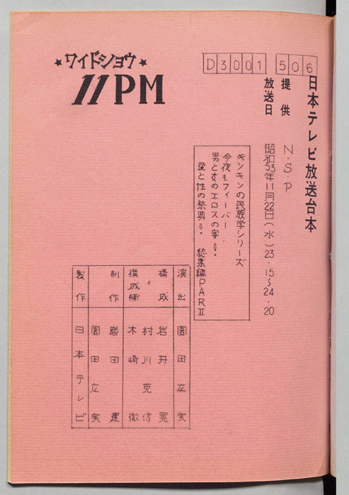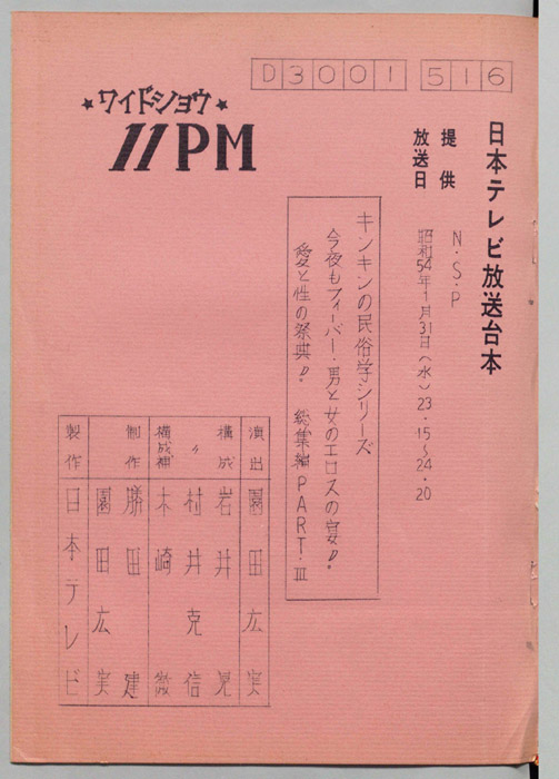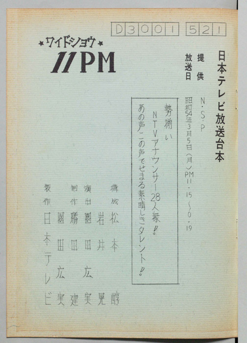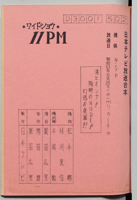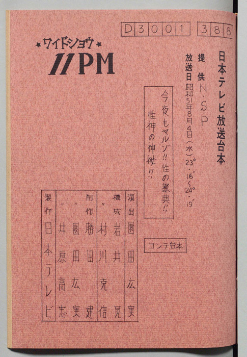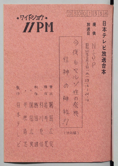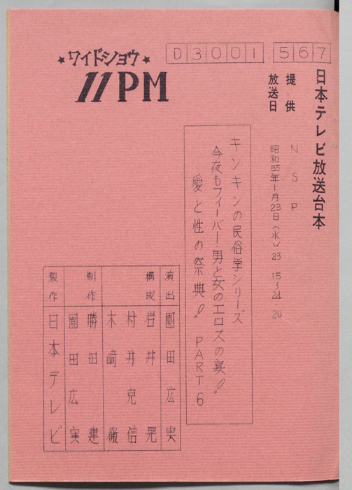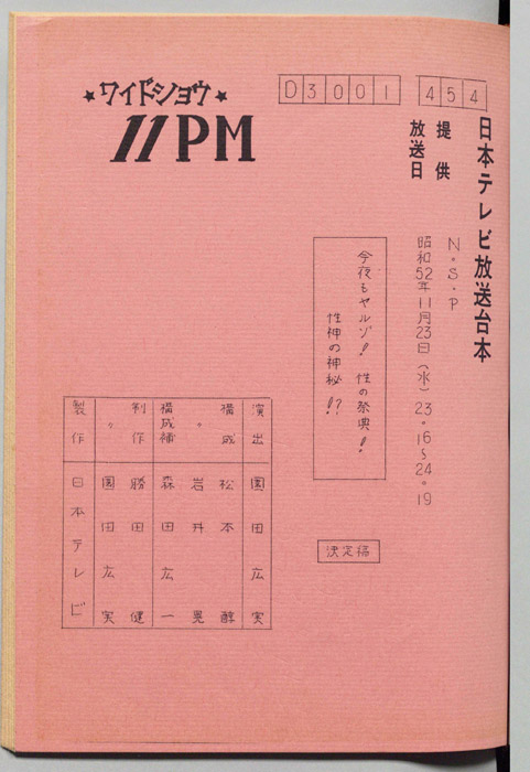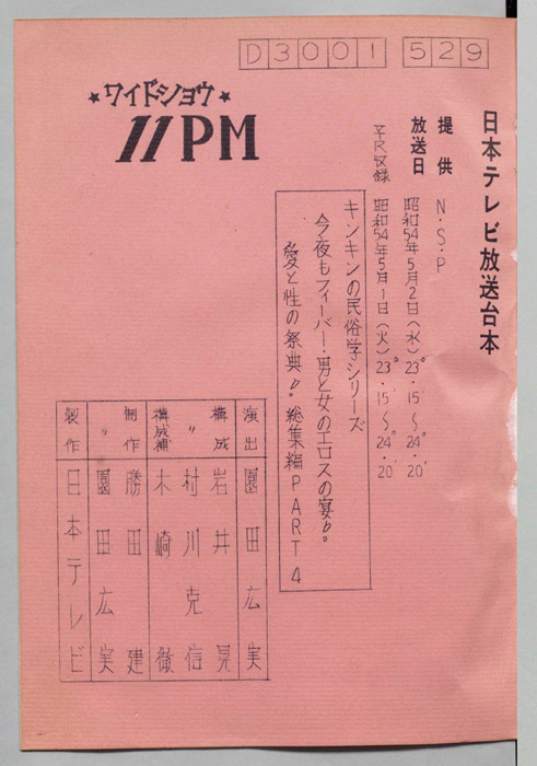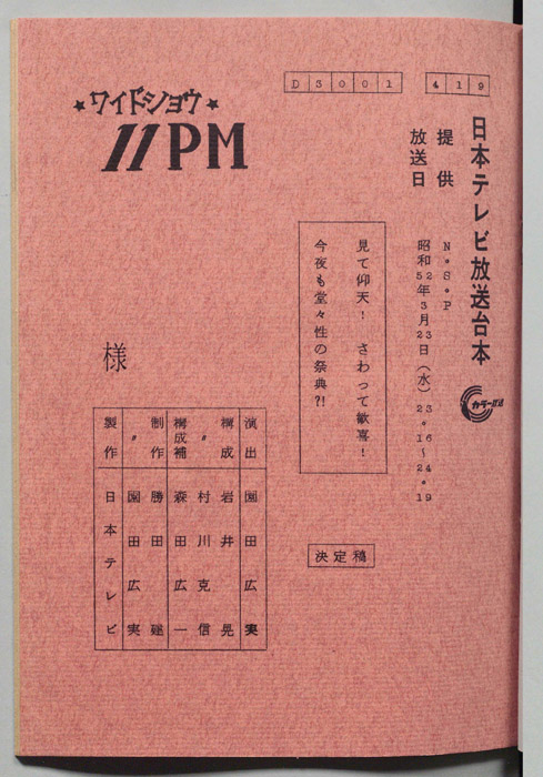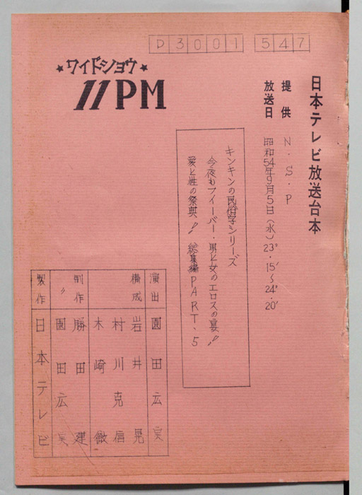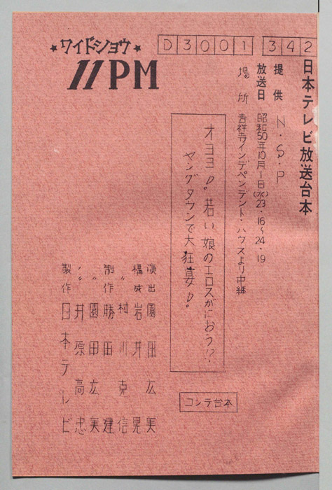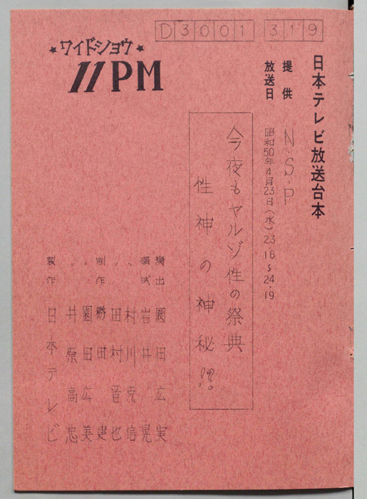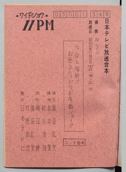 主な出演 : 所ジョージ,早乙女愛,山本晋也,高見恭子,九十九一,中山あずさ,立川談志,おぼん☆こぼん,小田かおる,井上麻衣,青木琴美,S-KEN,西森マリー,金行章輔,矢野涼子,評判ガールズ,ティッシュ・ガールズ,持続院法一,綾小路小百合,是