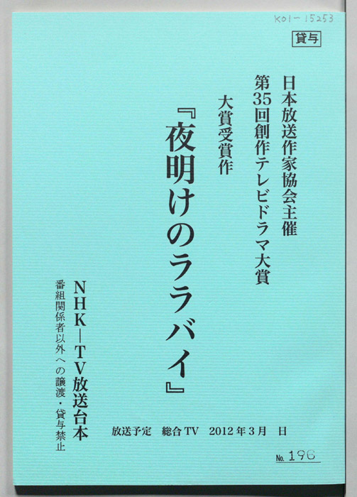 主な出演 : 長野博,紺野まひる,西村雅彦,森本レオ,宮崎美子,田山涼成,麻木久仁子,大友康平,谷村美月,かとうかず子,真嶋優,山田夏海,内田流果,野間口徹,野波麻帆,崎本大海,堀田和則,白石知世,鈴木惠理,長坂行馬,田中智砂,石河美幸,知花,津- 作家 : 金子成人