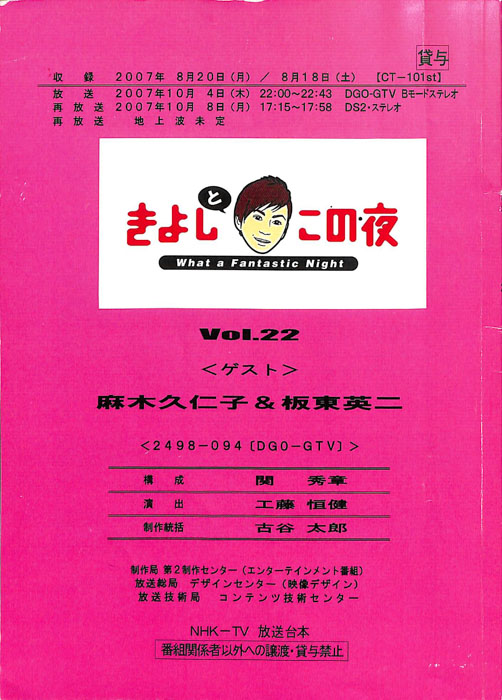 主な出演 : 坂東英二,永井美奈子,今田耕二