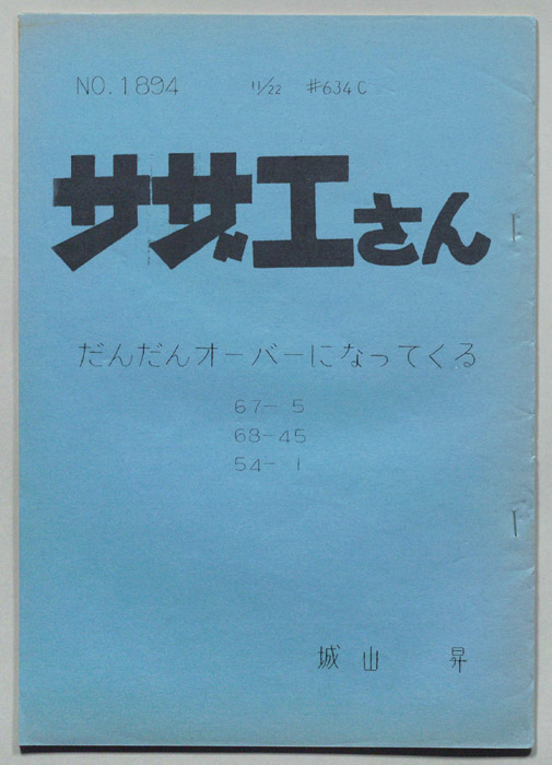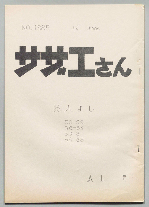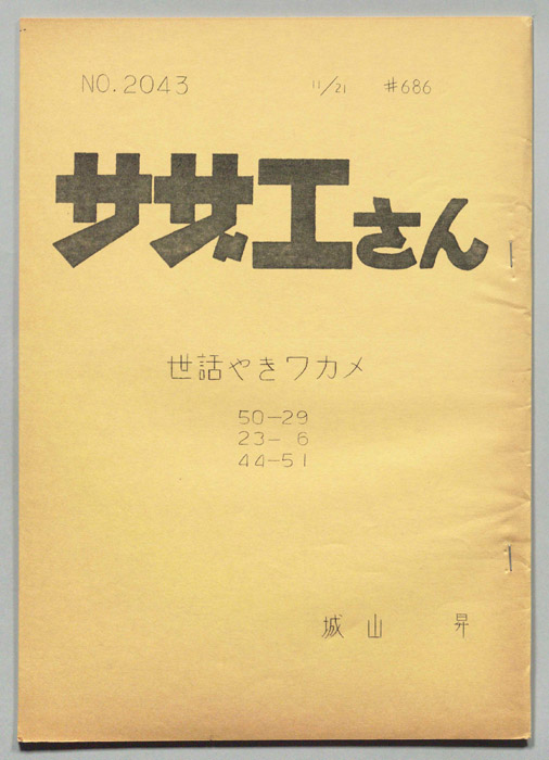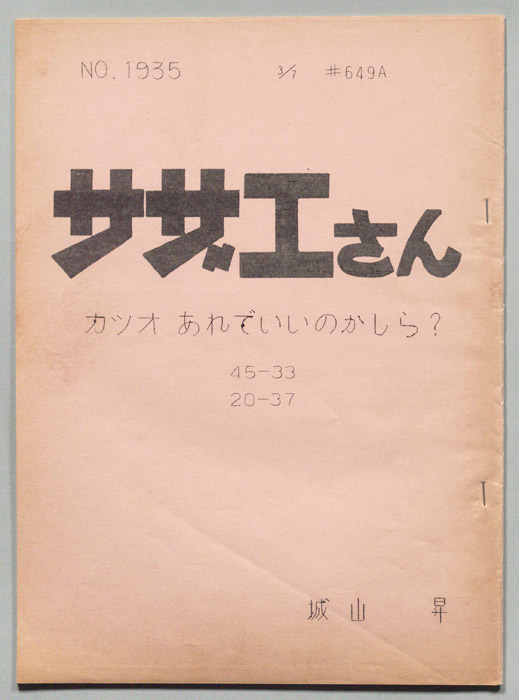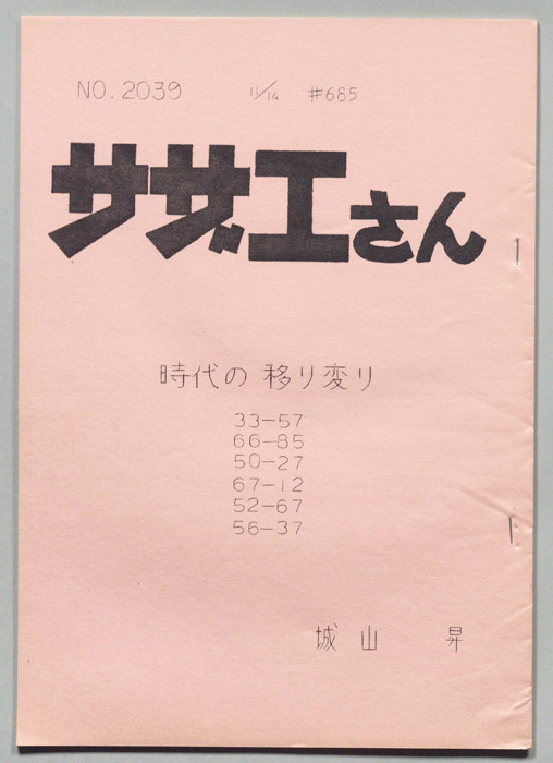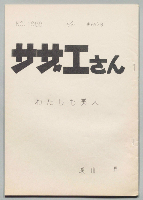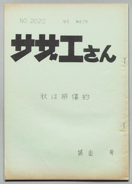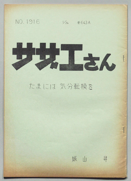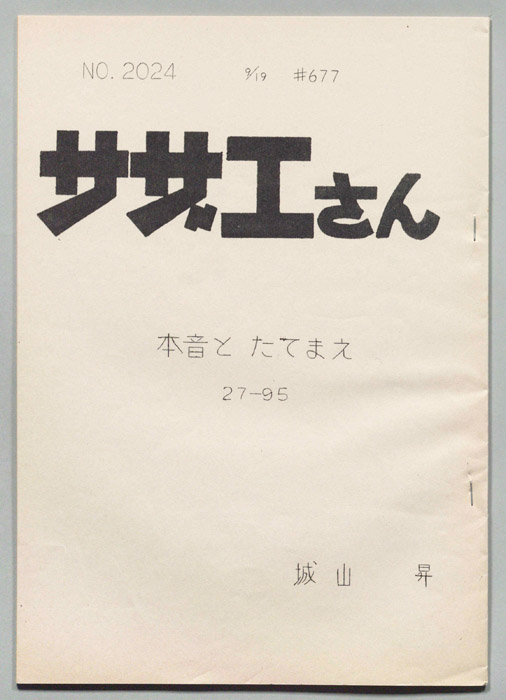 主な出演 : 加藤みどり,高橋和枝,野村道子,貴家堂子,増岡弘,麻生美代子,永井一郎東京の静かな住宅地に住む「磯野家」には、父・波平、母・フネ、長女・サザエ、長男・カツオ、次女・ワカメが周囲の人々と共に、賑やかに暮らしていた。後にサザエはフグ田マスオと結婚して、長男・タラオが誕生し三世代家族として、昭