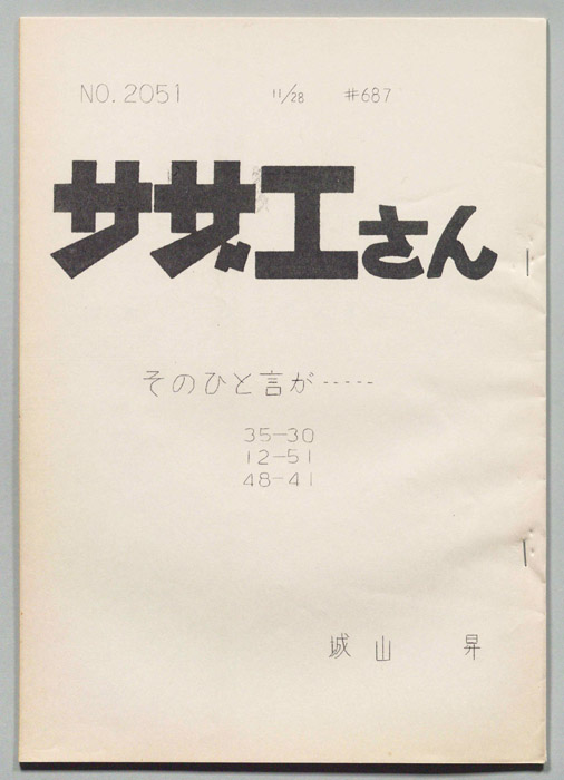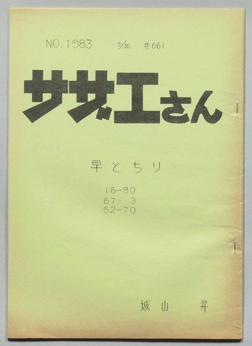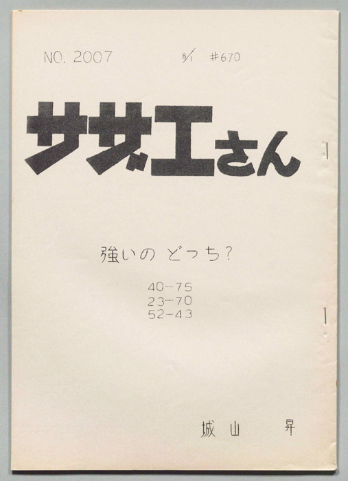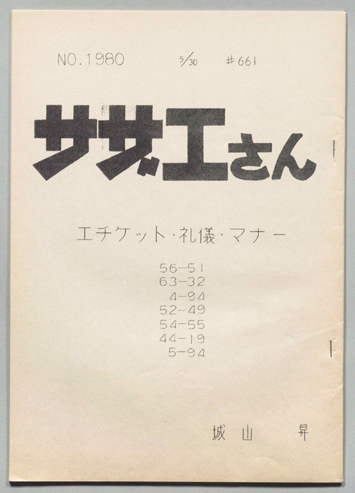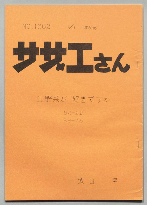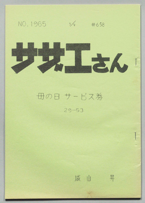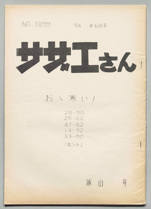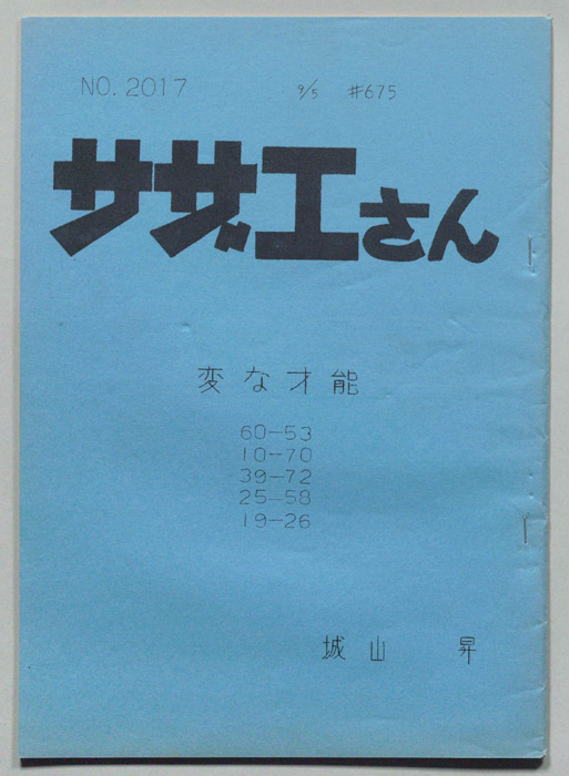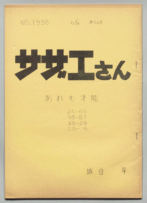 主な出演 : 加藤みどり,高橋和枝,野村道子,貴家堂子,増岡弘,麻生美代子,永井一郎東京の静かな住宅地に住む「磯野家」には、父・波平、母・フネ、長女・サザエ、長男・カツオ、次女・ワカメが周囲の人々と共に、賑やかに暮らしていた。後にサザエはフグ田マスオと結婚して、長男・タラオが誕生し三世代家族として、昭