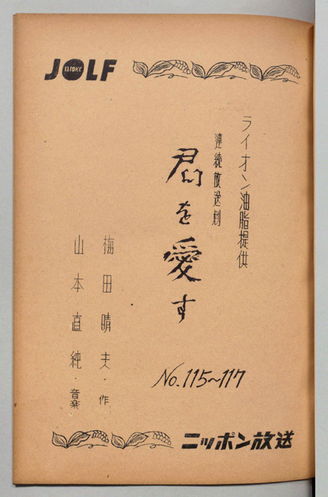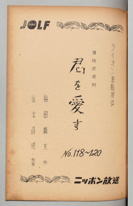 主な出演 : 第118回/小山田宗徳,中村有里,万里陽子,西口紀代子,小峰千代子,城達也,松宮五郎,湯浅智津子,(語り手)田中明夫,第119回/小山田宗徳,万里陽子,西口紀代子,小峰千代子,遠藤ハル,勝田久,日岸喜美子,松宮五郎,城達也,湯浅智津子,河- 作家 : 高久進