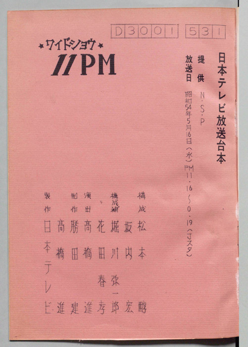 主な出演 : 愛川欽也,かたせ梨乃,今野雄二,飯塚文雄,池田満寿夫,小島功,東てる美,グリニス・オコンナー