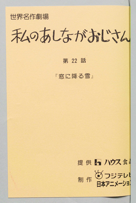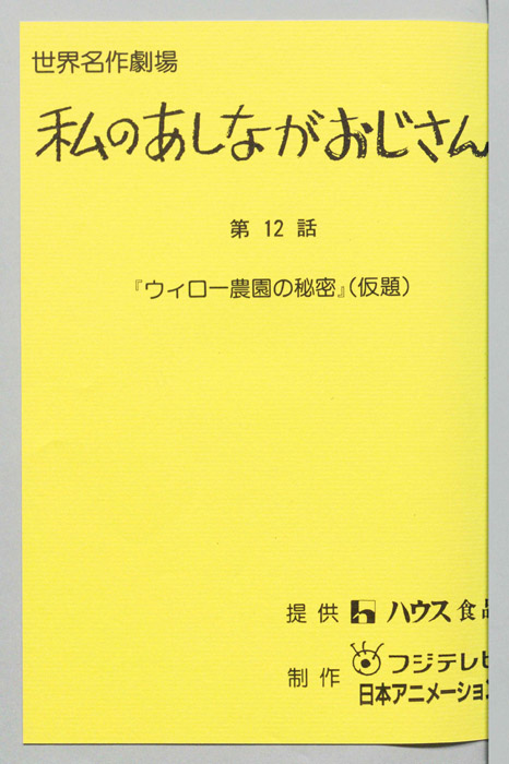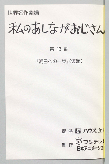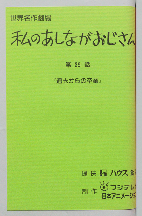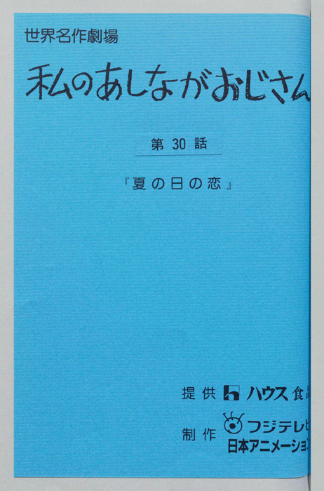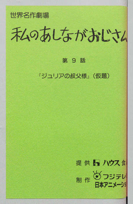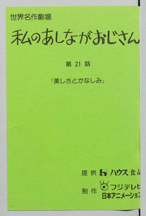 主な出演 : ジュディ・アボット:堀江美都子,ジュリア・ペンデルトン:天野由梨,サリー・マクブライト:佐藤智恵,ウォルター(ジャーヴィス・ペンデルトンの秘書):増岡弘【私のあしながおじさん】ジョングリア孤児院で育った13歳の「ジュディ・アボット」が孤児院を出る日が近づき、彼女は高校進学の援助を受けられる孤児を選ぶ選考会に臨むが、評議員たちを怒らせてしまう。落ち込むジュディだったが、自