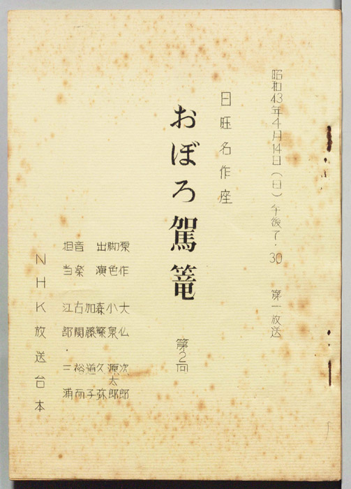主な出演 : 中村竹弥,喜多川千鶴,森健二,片山豊,山岡徹也,林寛,岸正子,清川新吾,市川春代,永井達郎,飯田覚三,森川公也,森田昌宏,深水吉衛,早川研吉,大沢真吾,髙田健二,加賀谷千里,(語り)芥川隆行