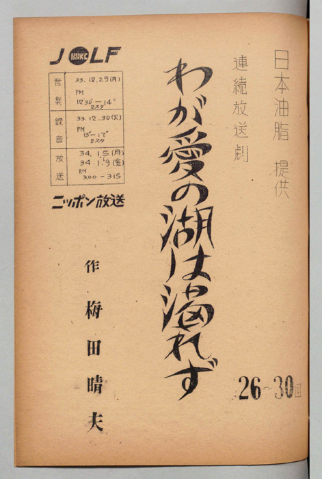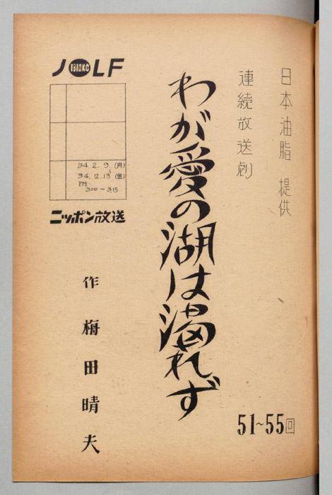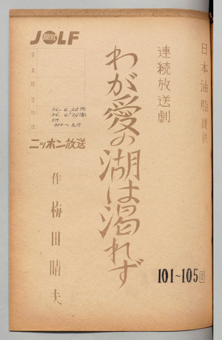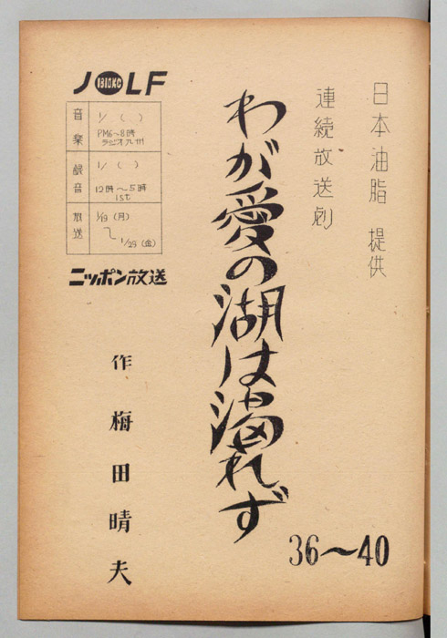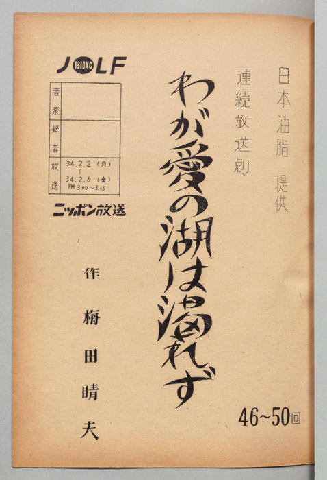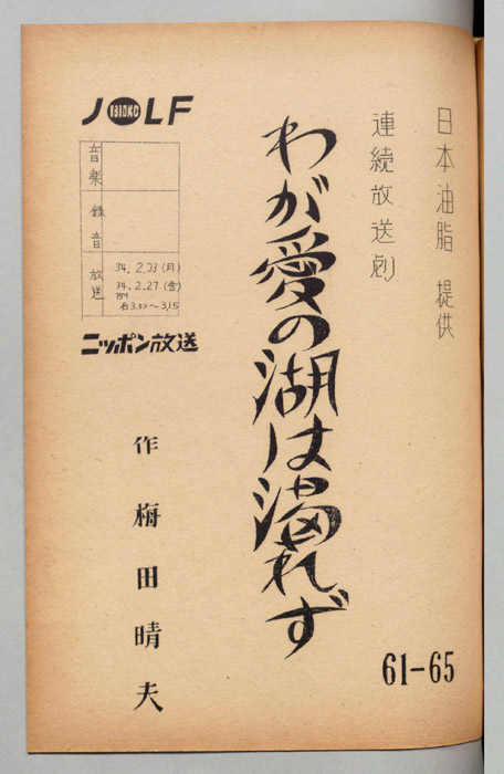 主な出演 : 藤巳恵子,緋多景子,大坪日出代,大井潤,菊地晴美,杉本たか子,原彩子,上田茂太郎,加納英二郎,高橋博(朗読)- 作家 : 岡田光治
