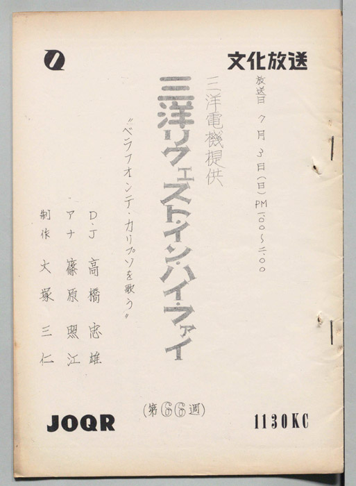 - 放送局 : 東京放送