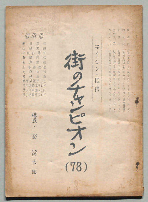 - 放送局 : CBC,朝日放送,山陽放送,RKB毎日,静岡放送,新潟放送,北海道放送,北陸放送,長崎放送,東北放送テレビ,ラジオ熊本テレビ,ラジオ中国テレビ,ラジオ東京テレビ,