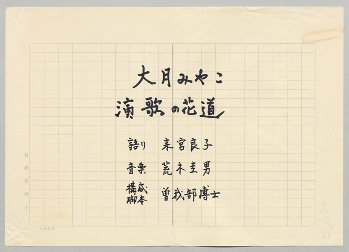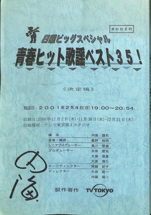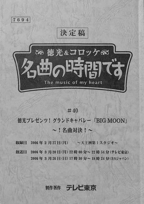 主な出演 : 大月みやこ,川中美幸,キム・ヨンジャ,五代夏子,小林幸子,神野美伽,布施明,森進一,山本みゆき,吉幾三,小田切千