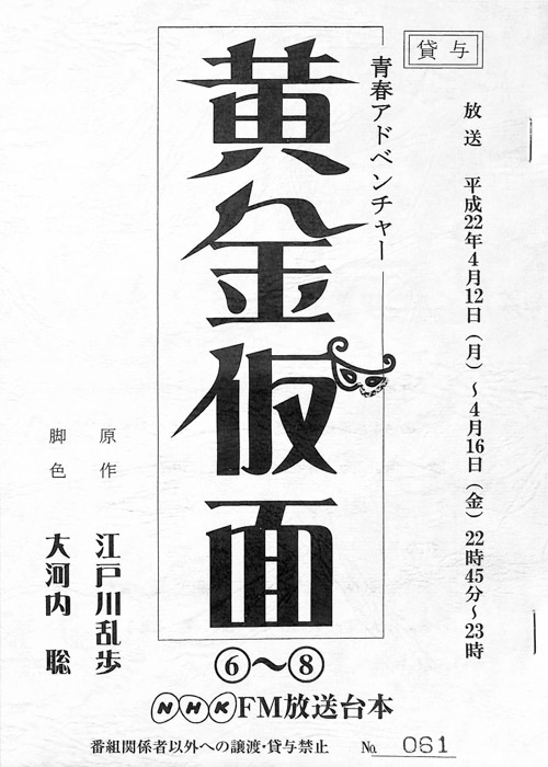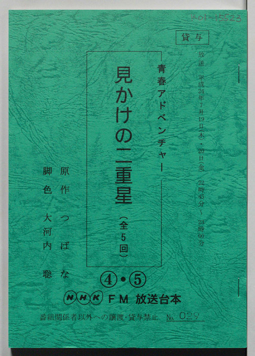 - 作家 : 中津留章仁(6),大河内聡(7),日和聡子(8)