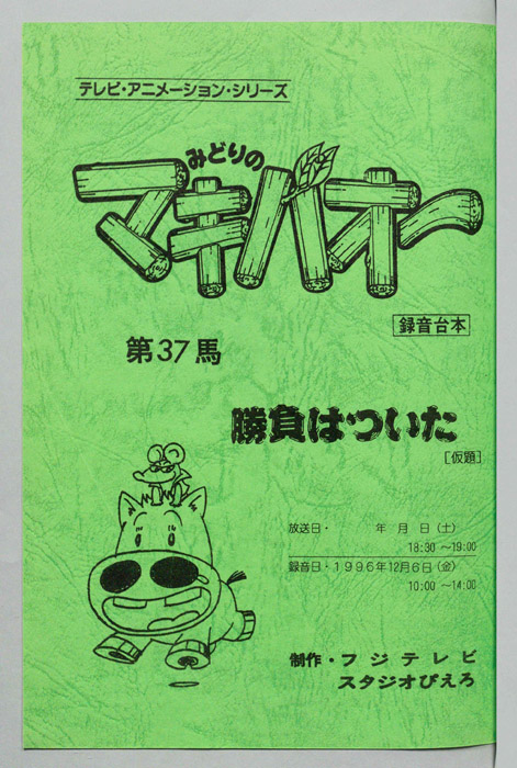 主な出演 : 多平七郎)加賀谷純一,(服部政人:半蔵)大滝進矢,(アマゴワクチン)松本保典,(山中騎手)大川透,(立原)宝亀克寿,(サドミアマゾン)大滝進矢,(アナウンサー)吉田伸男【みどりのマキバオー】北海道の牧場『みどり牧場』の名馬「ミドリコ」から、まるでロバのような不思議な姿の馬「マキバオー」が生まれる。その後、みどり牧場の借金を返済する為、ミドリコが堀江牧場へ売られることになり、母