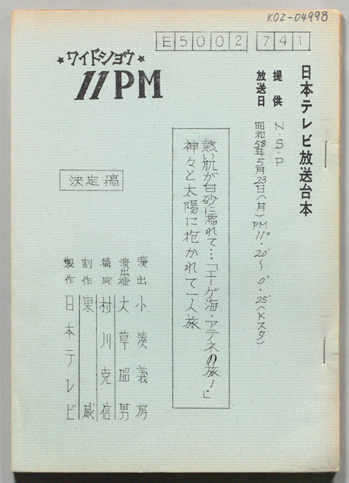 主な出演 : 愛川欽也,浅倉匠子,今野雄二