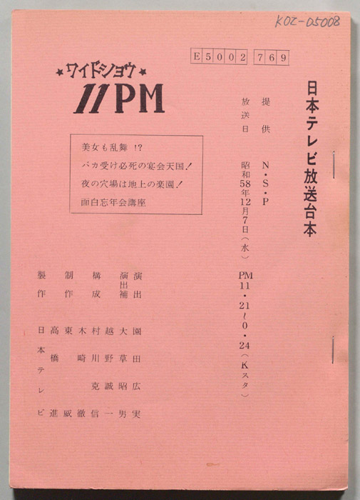 主な出演 : 大橋巨泉,松岡きっこ,久里洋二