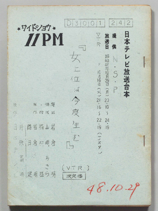 主な出演 : 大橋巨泉,松岡きつこ,せんだみつお,岩永嘉弘,浅葉克己,小川隆之,椙山三太,大野雄二,久里洋二,池島るり子,デニス大城,ザ・サラブレッズ