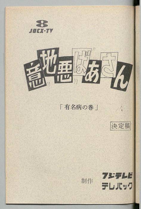 主な出演 : 青島幸男,河原崎長一郎,坪内ミキ子,田崎哲也,三波豊和,白石まるみ,イッセー尾形,塩沢とき,曾我町子,大和撫子,[川崎直也]