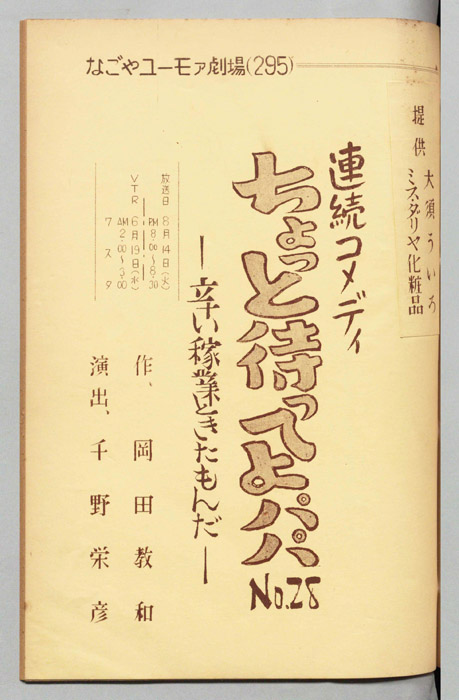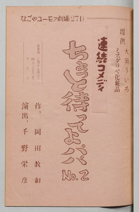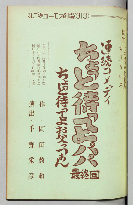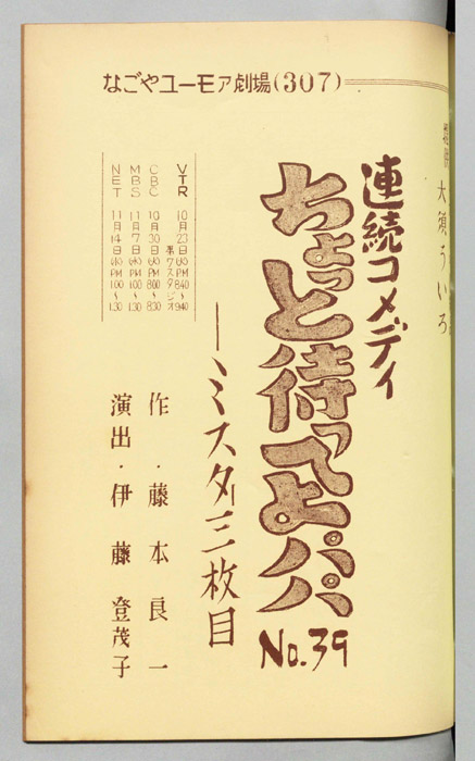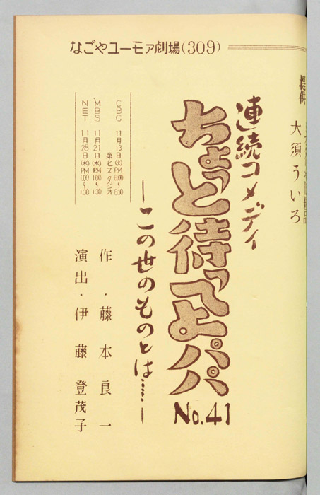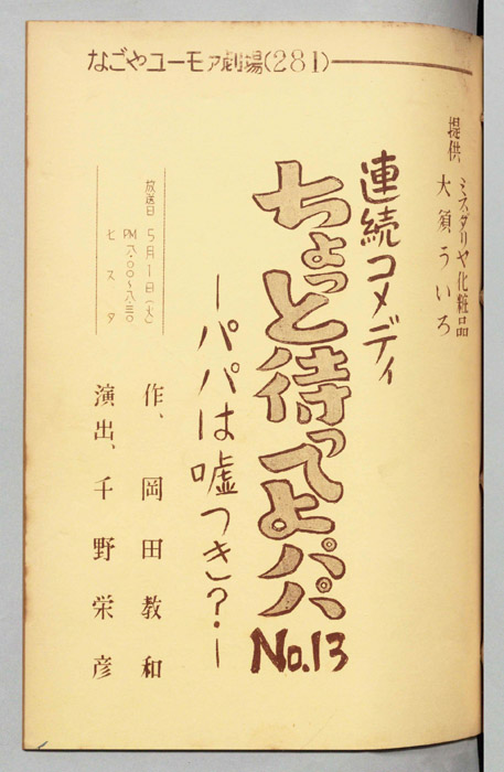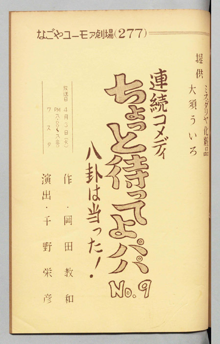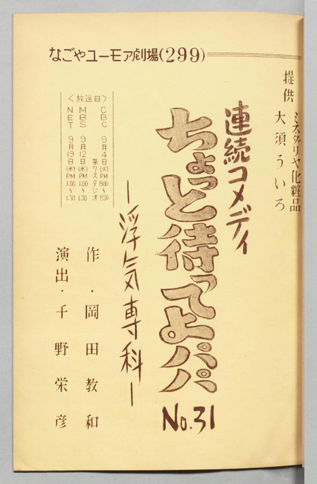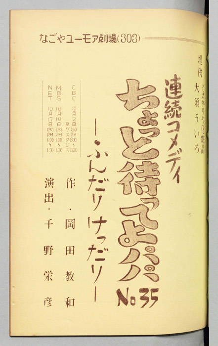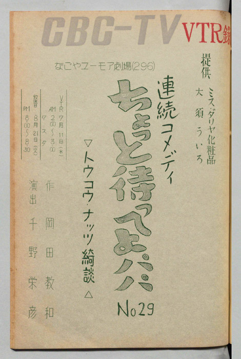 主な出演 : ミヤコ蝶々,左卜全,伊藤友乃,桑山正一,藤山竜一,天野鎮雄,岡本昭一,柳有,島愛子,加藤教子,高田典子,劇団CBC,CBC子供サークル,並木グループ