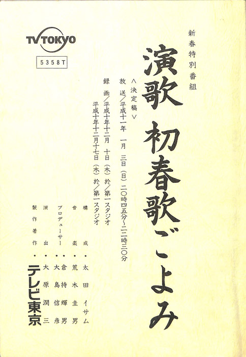 主な出演 : 石川さゆり,五木ひろし,川中美幸