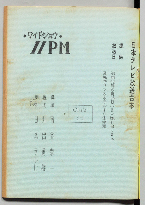 主な出演 : (ホスト)藤本義一,(ホステス)安藤孝子,(ニュース・キャスター)飯干晃一:大阪読売新聞記者,(イレブン・ドクター)木崎国嘉:大阪日赤内科部長,(バーテンダー)野村頻紹,(ハモンド)小曽根実,(カバー・ガール)松