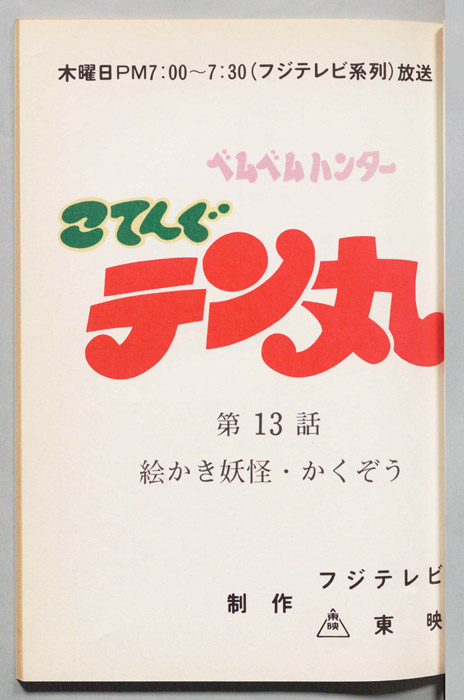 主な出演 : [(天丸)藤田淑子,(クロ)松島みのり,(花井妖子)安田あきえ,(妖子のおばあちゃん)鈴木れい子,(がんばり入道/入間太)大竹宏,(ボロガッパ/河口照三)千葉繫,(油すまし/油井まさし)鈴木清信,(松坂先生)舛田紀子](ナ【ベムベムハンターこてんぐテン丸】人間界の裏側に存在すると言い伝えられている『妖怪の国』。ここにはあらゆる妖怪たちが暮らしていた。この国では三千年にもわたり『天狗大王』と呼ばれる大妖怪が治めており、そ