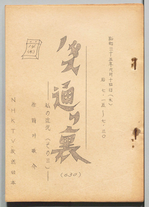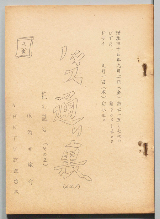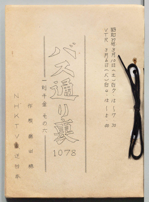 主な出演 : (すべて手書き)宗近晴見,塚本信夫,堀井永子,富士栄喜代子,荒木道子,亀谷雅敬,武内亨,桑山正一,佐藤英夫,今村原兵,森眞子,小笠原弘子,新村礼子