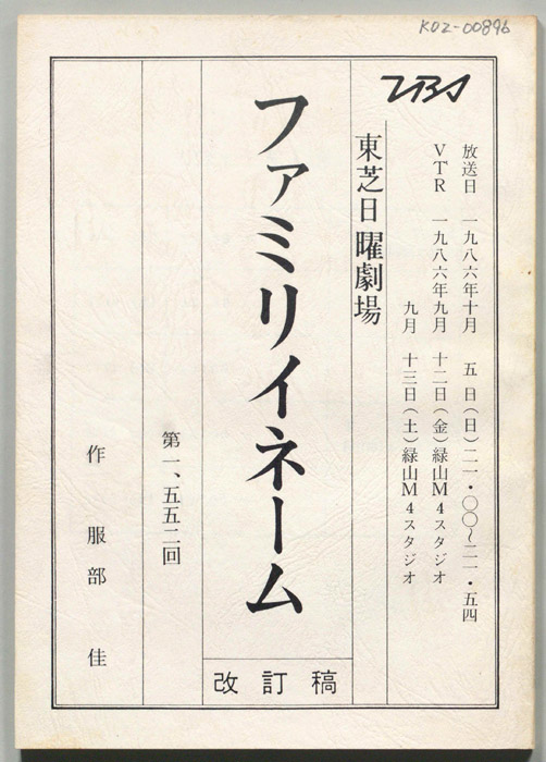 主な出演 : 坂口良子,乙羽信子,大和田獏,中山仁,沢田亜矢子,上原謙,森本レオ,宮下順子,別宮史恵,藤木悠,佐々木すみ江,丸山秀美,高沢順子,塩沢とき,棟理佳- 作家 : 古田求