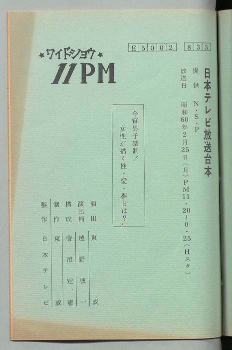 主な出演 : 松岡きっこ,宮下順子,家田荘子,高橋章子,泉織香,取見麻也子,伊藤久美子,竹田さなえ,藤田佳の実,杉原淳とニューサラブレッズ