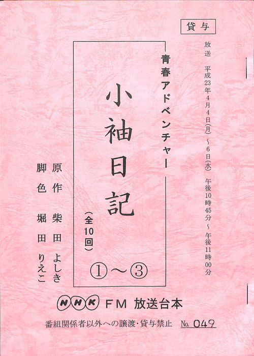 主な出演 : 木内晶子,純名里沙,平田裕香,水野ゆふ,藤代三千代,丸山優子,片山景介,佐藤せつじ,メイサツキ,良田麻美,瀬尾智美,宮内順子,安田裕,関貴昭,常石梨乃,星さいか- 作家 : 堀田りえこ
