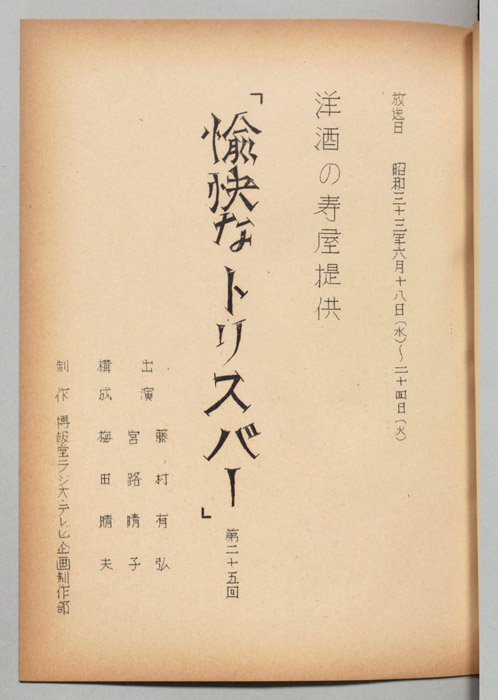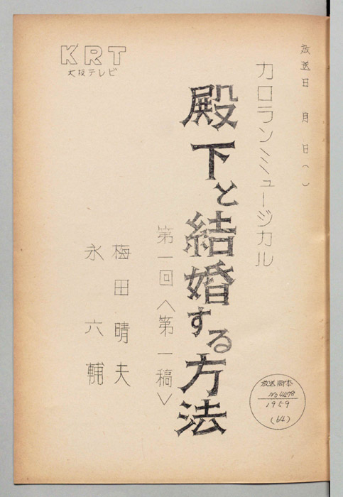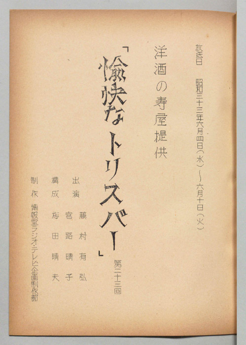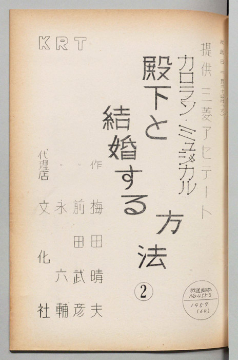 主な出演 : 宮地晴子,中川弘子,中原美紗緒,大辻三郎,清水谷薫,万里陽子,白鳩眞弓,三木鮎郎,高橋豊子