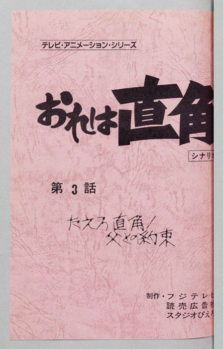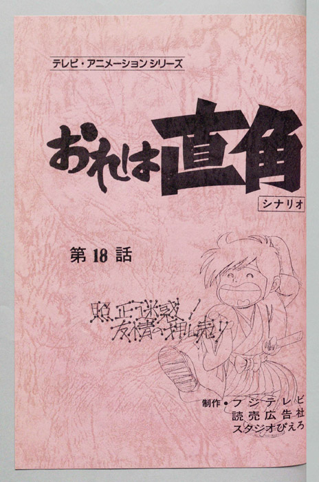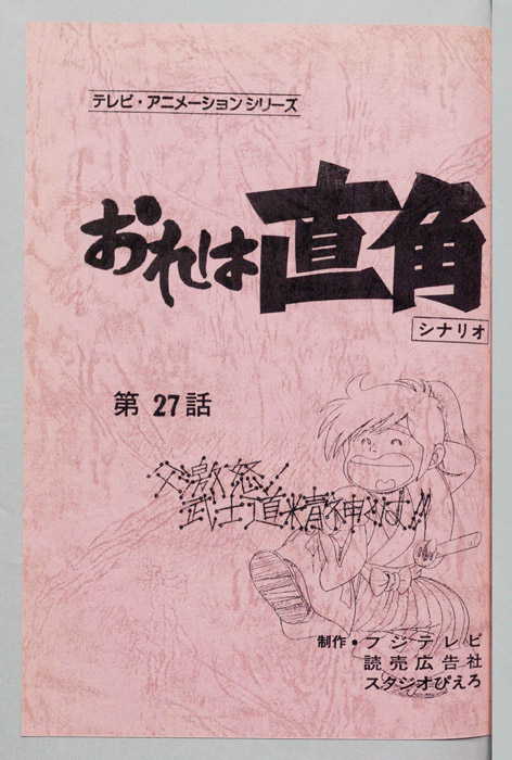 主な出演 : (郷)子安武人,(直角)坂本千夏,(神崎),(福田),(岩本),(生徒A,B),(西村),(斎門),(ニコピン)松本梨香,(月形)二又一成,(綾乃)大谷育江,(審判),(子供①),(生徒C),(声),(瞳),(石垣)青野武,(香苗)滝【おれは直角】江戸時代末期、身分は低いながらも厳格な武士の家庭に生まれた『石垣直角(いしがきちょっかく)』は父から「武士道とは曲がることなく直角であるべし」と教えられ、人一倍真っ直ぐな武士道を貫く少年へと育った。そ