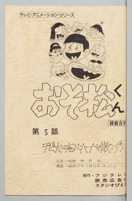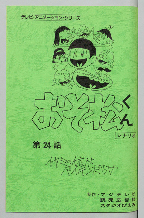 主な出演 : (イヤミ)肝付兼太,(チビ太)田中真弓,(デカパン)大平透,(ダヨーン)神山卓三,(レレレのおじさん)千葉繁,(おそ松)井上瑤,(チョロ松)松本利香,(カラ松)真柴摩利,(トト子)松井菜桜子,(母)横尾まり,(ブタの花子)滝沢久美子,(肉【おそ松くん】平凡なサラリーマン『松野松造』と専業主婦の『松野松代』の夫婦の間に生まれた六つ子、『おそ松』『カラ松』『チョロ松』『一松』『十四松』『トド松』は皆が個性の強い性格をしていて曲者ぞろいで近所を巻き込んで、賑